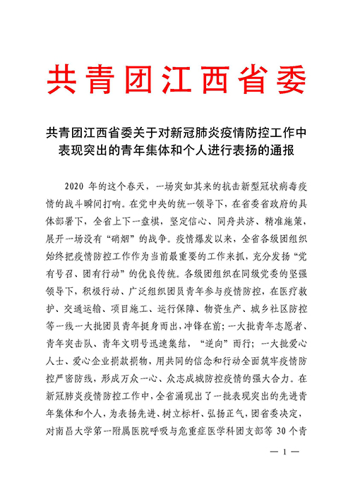 共青团江西省委通报表彰