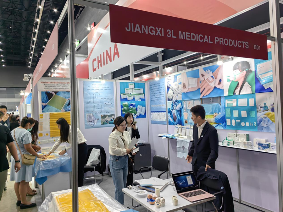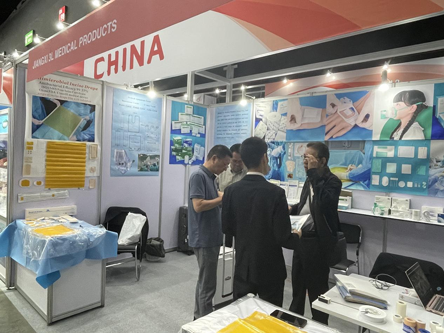 展会期间,威廉希尔足球官网含碘手术薄膜吸引了许多客户驻足垂询,该产品优越的持粘性、透气性和阻水性以及高性价比赢得客户的纷纷称赞。威廉希尔足球官网外贸销售团队在展会现场与参展商进行了专业交流,共同探讨医用耗材创新需求,分享了公司在医疗材料研发领域的新成果,获得了参展客户的高度称赞。