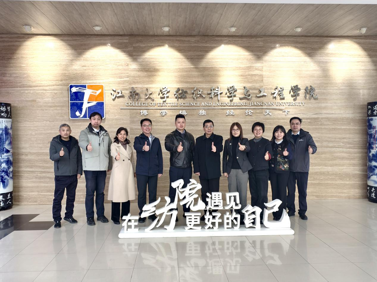 签约仪式前,威廉希尔足球官网集团周峰总经理一行6人在宋鋆老师的引导下,参观了江南大学针织中心,深入了解中心在纺织材料、结构设计与功能整理等方面的科研设施与成果积累,展现了高校科研的深厚底蕴,让企业对双方的未来合作充满期待。